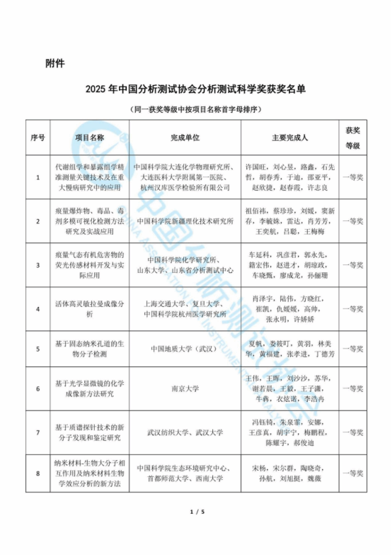 11月25日,中国分析测试协会公布了中国分析测试协会分析测试科学奖2025年度获奖名单,共评出获奖项目43项。我院夏帆教授团队以“基于固态纳米孔道的生物分子检测”的科研成果获得了2025年度中国分析测试协会分析测试科学奖一等奖。